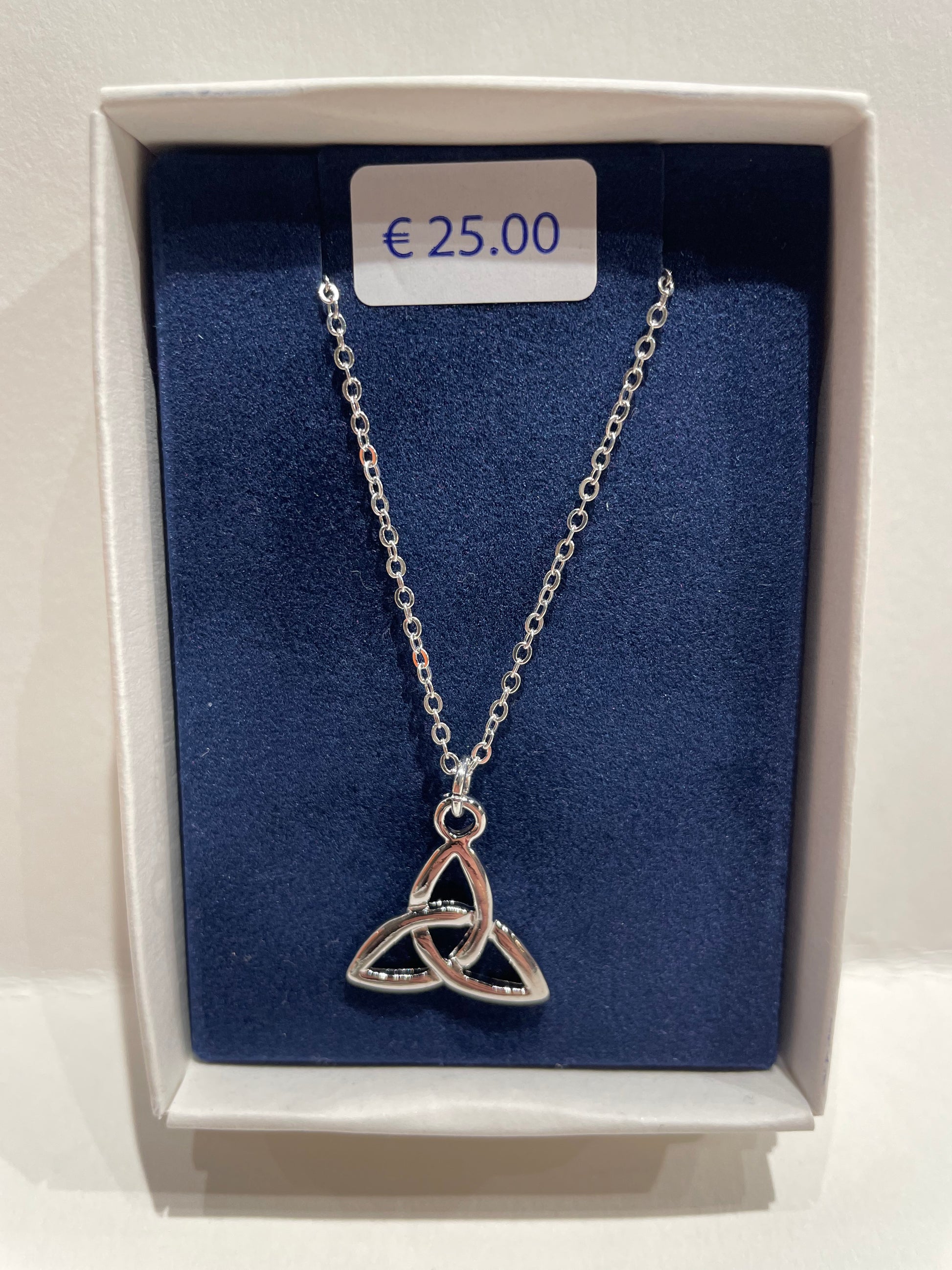 Made in County Wicklow using a mix of pewter and silver on an 18 inch chain, these beautifully designed Celtic inspired Pieces each piece comes in a presentation box.